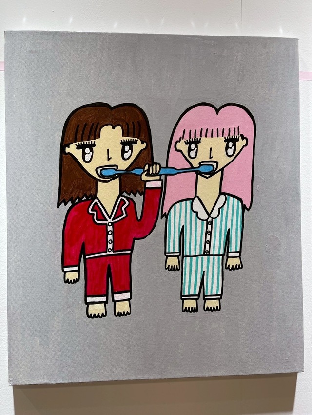 サイズ:F0 180 x 140 mm マテリアル:Aclyric on Canvas ●STATEMENT ある日、ヨネさんから連絡が来た。 「真面目に絵を描いて欲しい」 続けてこう言った。 「ぼく脳君が真面目に絵を描いて、それを展示しよう」 僕はこの展示で"真面目に"絵を描いた。 初めて"真面目に"絵を描いた。 キャラクターを考えた。 最初はヨネさんの無茶振りで嫌々描き始めたが、いつしかそれを忘れて絵を描くのに没頭していた。 僕が描いた"ただの絵"を是非見に来て下さい。 ●プロフィール ぼく脳 芸人・ぼく脳はSNSを中心に活躍中。日常に転がるアイテムを使った独創的な笑のセンスが人気で、その才能はファッション面にも発揮される。 2024年PARCO MUSIUM TOKYOにて大規模個展「ぼく脳展」を敢行。」