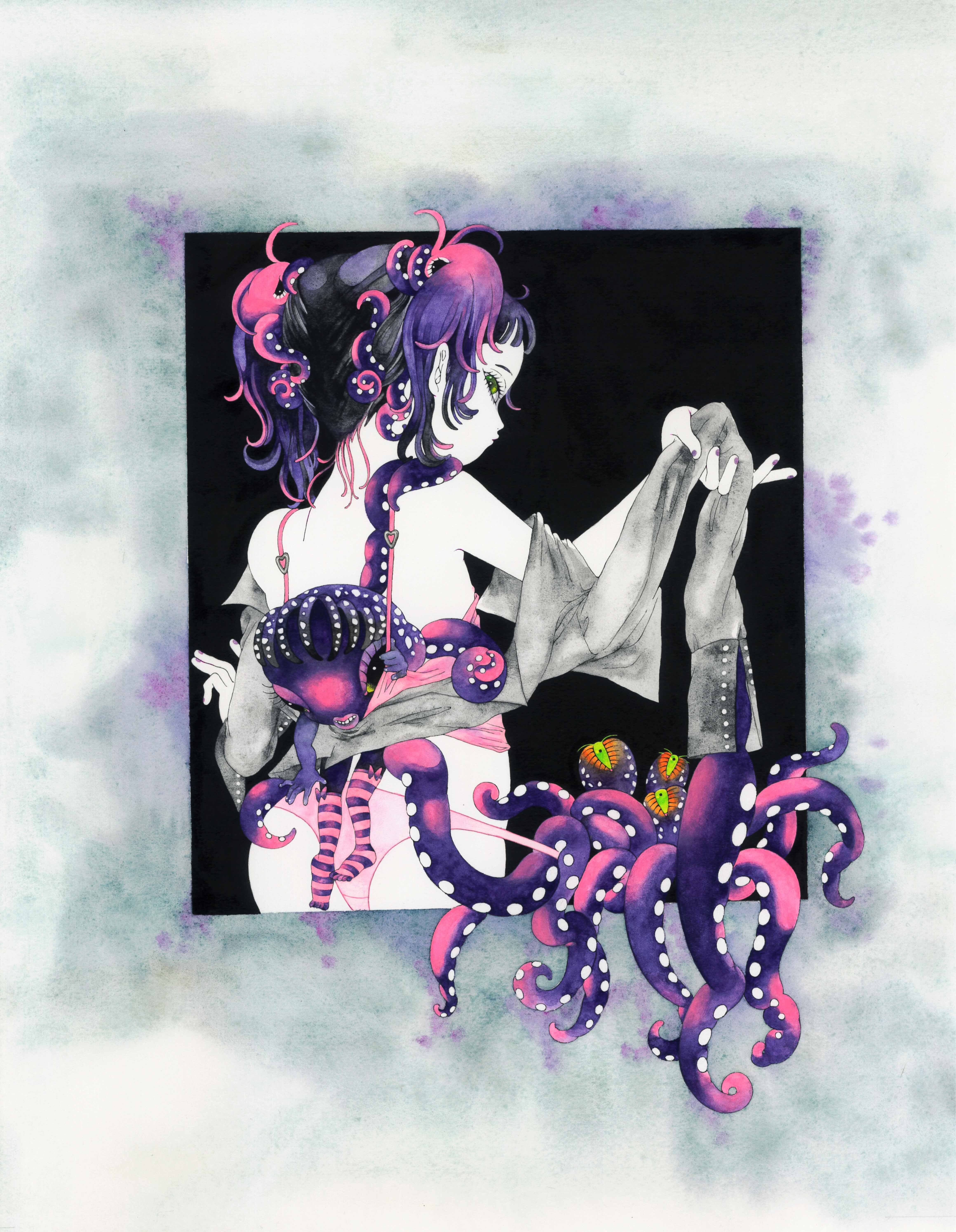 仕様:水彩紙・水彩絵具・墨汁・額